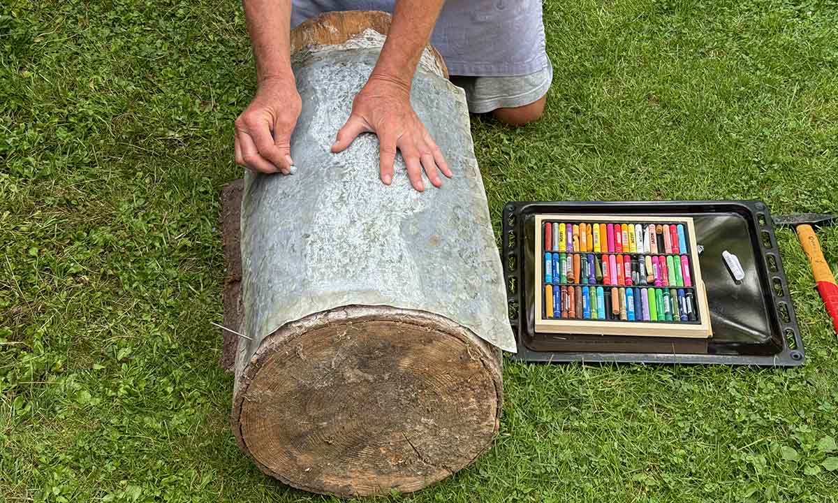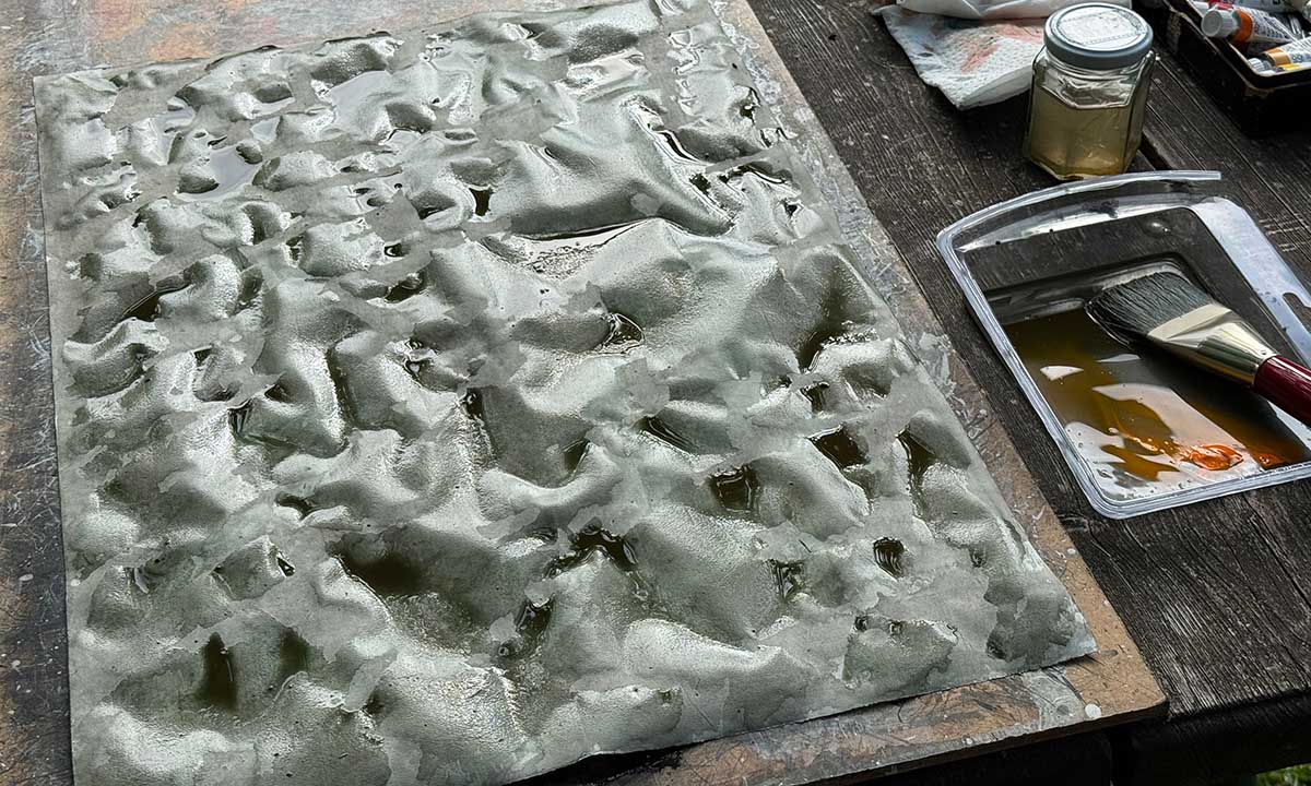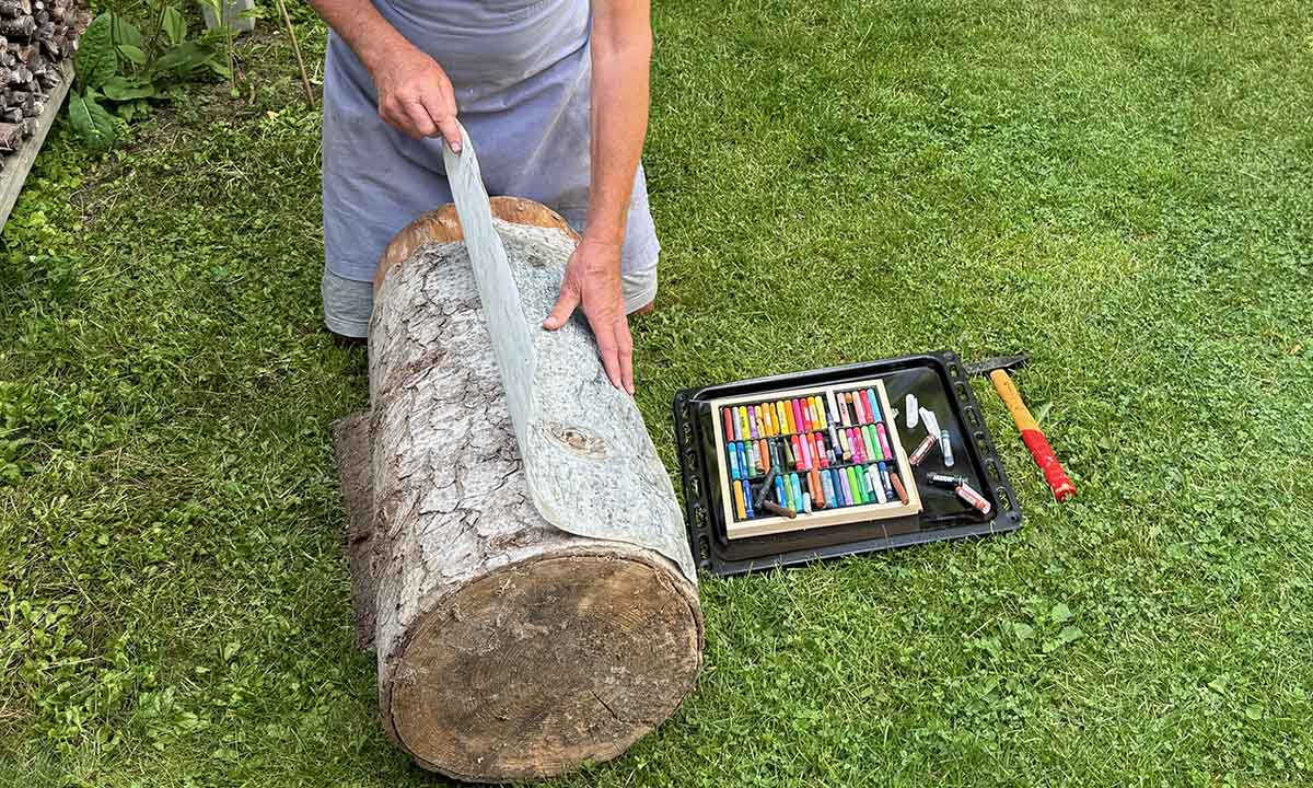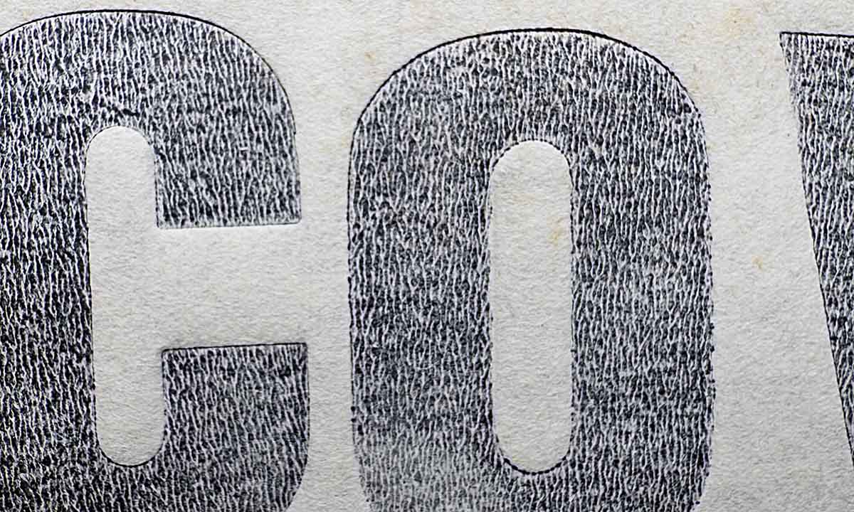 büchlein auf den tisch — walze, farbe, druck ! dann noch ein weiterer druck, zum einkleben auf der titelseite. heimwärts durch den schnee und ein blick durch die lupe: die schrift war gerastert: ein rosenmontags-wunder?